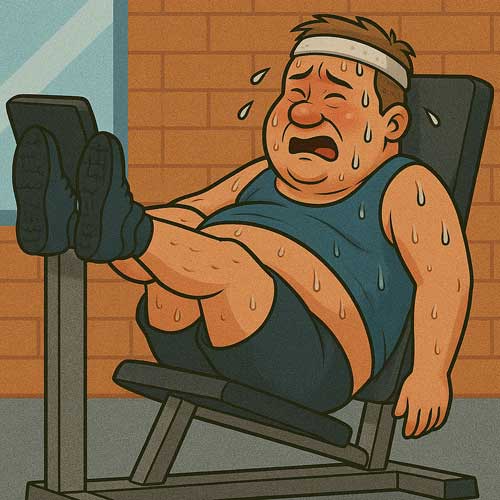 Pludselig kom jeg til at kigge i et spejl,- og det var uhyggeligt afslørende, den storsvedende tyksak, havde moset knæene helt op i vommen, og derfor var det ikke muligt at benytte maskinen korrekt….bummer, og jeg forlod surmulende maskinen, med spejlbilledet indprentet i hjernemosen.
